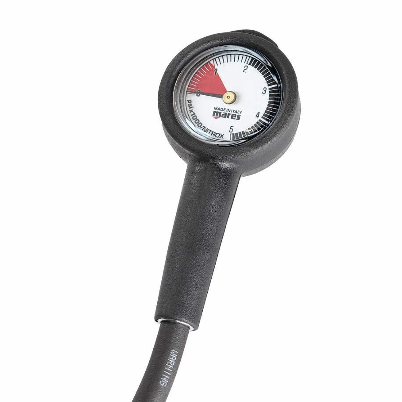 Zestaw zawiera również manometr MR-1 o kompaktowych wymiarach, z mosiężną obudową o średnicy 50 mm, szkłem technopolimerowym i luminescencyjną tarczą zapewniającą dobrą czytelność. Jest kompatybilny z nitroksem i wyposażony w gumową obudowę ochronną z oczkiem do mocowania oraz wąż o długości 80 cm.