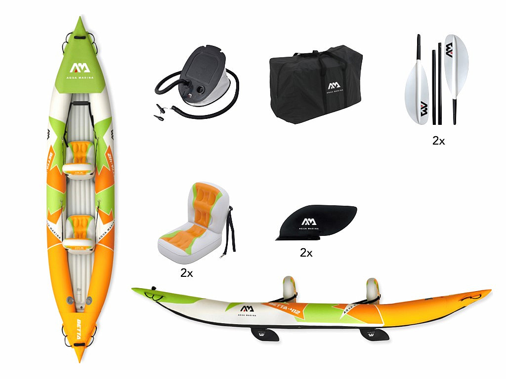 Kajak BETTA 412 to bardzo kompaktowy nadmuchiwany kajak dla dwóch osób, który został zaprojektowany z myślą o zwiększonej wytrzymałości. Jego główną zaletą jest łatwa instalacja, przechowywanie i użytkowanie. Nadaje się szczególnie do dużych jezior i spokojniejszych strumieni. Dzięki niewielkiej wadze docenisz łatwość obsługi. Dzięki swoim właściwościom nadaje się szczególnie dla początkujących i bardziej zaawansowanych kajakarzy.