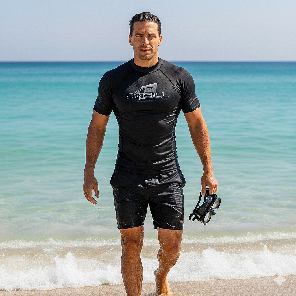 Wykonany z najwyższej jakości, trwałych materiałów z płaskimi szwami eliminującymi otarcia, ten rashguard oferuje maksymalny komfort i wydajność zarówno w wodzie, jak i poza nią.