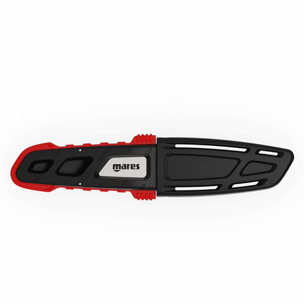 Nóż jest dostarczany z plastikową pochwą. Dzięki przelotkom nóż do nurkowania można łatwo przymocować do kamizelki Mares.