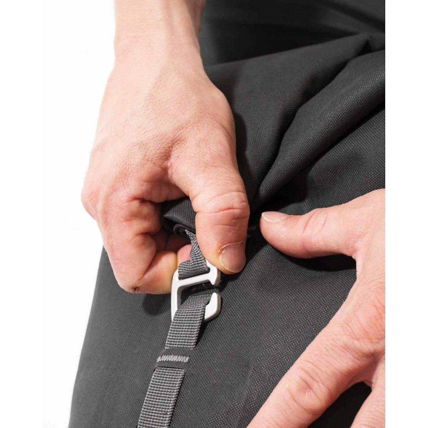 - Całkowicie wodoodporne, rolowane zamknięcie z dwoma haczykami G